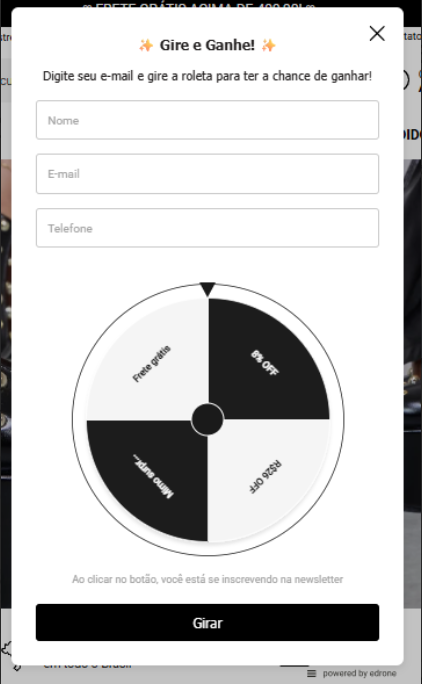 Em parceria com a Etraction, a marca apostou na nova funcionalidade da edrone: o Pop-up Roleta da Sorte.
